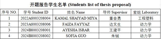 According to the regulation of UCAS, we now started thesis proposal. The international students in the following list need to complete thesis proposal this time: