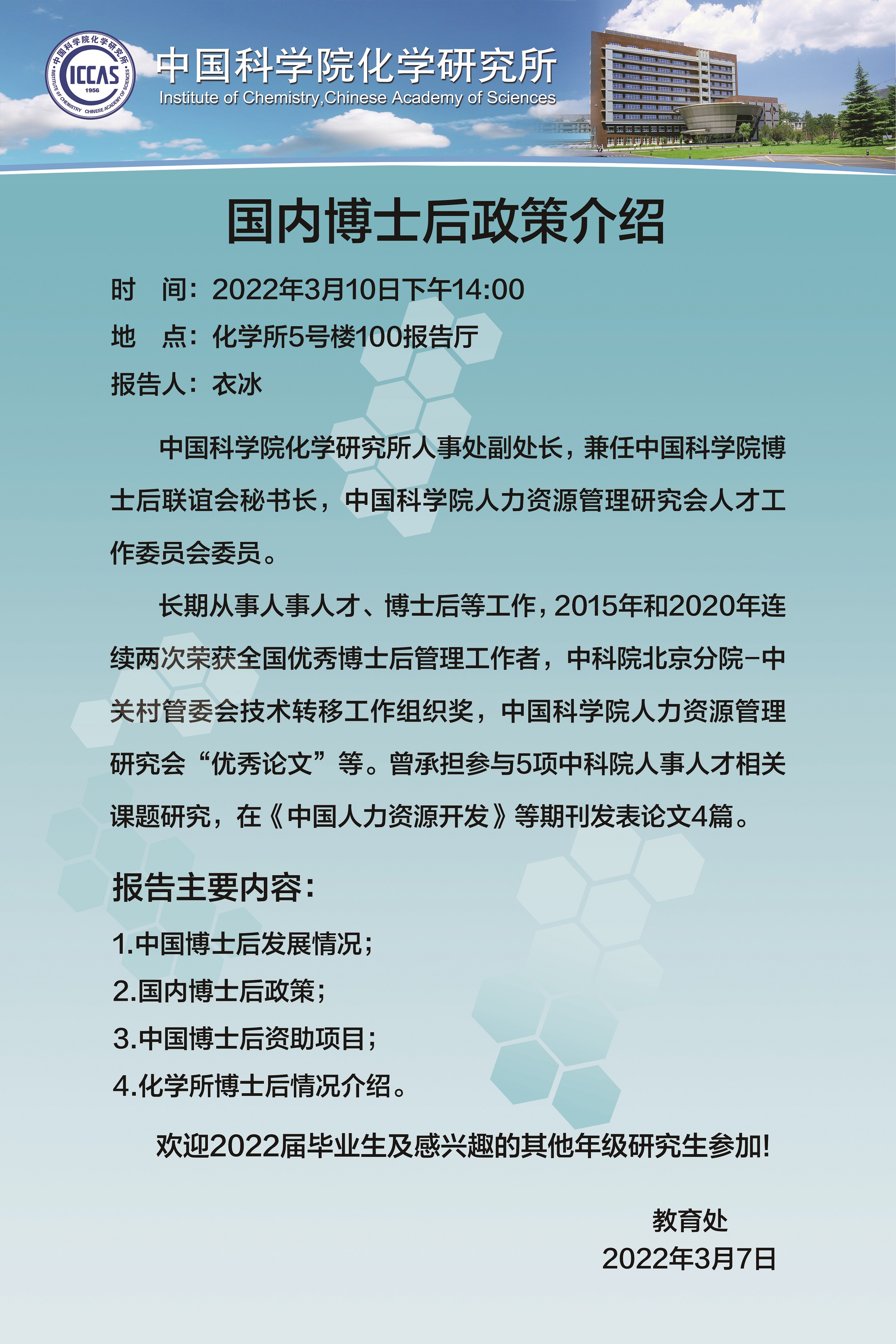 【通知】关于举办2022年国内博士后政策介绍报告会的通知
