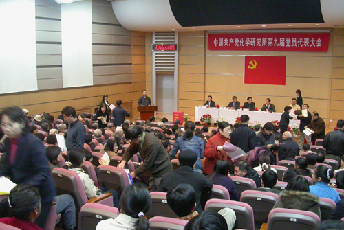 2004年2月26日下午,在化学所礼堂召开了中国共产党化学研究所第九届党员代表大会。大会在雄壮的国歌中开始。党委副书记杨淑霞主持会议,党委书记方世璧做了题为“以‘三个代表’重要思想为指导,抓住机遇,促进研究所的跨越发展”的工作报告,中科院副秘书长、京区党委书记何岩同志到会并讲了话。京区党委常委副书记项国英、组织部副部长肖建春、组织员邵有余等同志也参加了会议。
