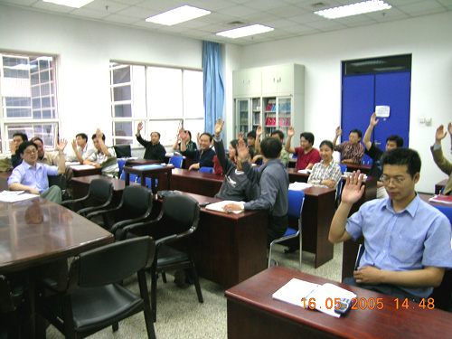 随后,支部大会讨论了邵科峰同志加入中国共产党的申请。该同志于2001年4月在院研究生部提交了入党申请书,2003年10月再次向支部递交了入党申请,并多次提交思想汇报,在平时的工作中严格要求自己。特别是在这次保持共产党员先进性教育中,他积极参加全部学习、评议等活动。与会党员一致认为该同志已基本符合共产党员的条件,同意接受其为中国共产党预备党员。老党员对邵科峰同志提出殷切期望,鼓励他继续加强党的知识学习,加强党性锻炼,严格要求自己,进一步提高工作能力和水平,团结更多的同志,把工作做的更好。邵科峰同志也在会上发言,感谢大家的建议和希望,表示要更加努力学习和工作,争取做一名优秀的共产党员。