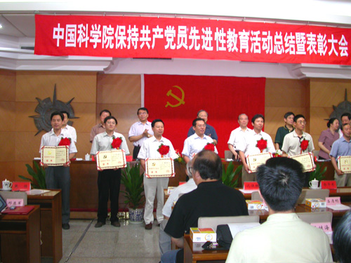 6 月28日 上午,在纪念中国共产党建党84周年之际,中国科学院召开保持共产党员先进性教育活动总结暨表彰大会,20名共产党员、7名党务工作者分别被授予院京区“优秀共产党员”和“优秀党务工作者”荣誉称号。化学所张志杰同志被评为院京区“优秀共产党员”,黄丽荣同志作为党务工作者受到表扬。