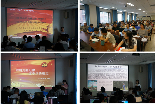 支委在会前向全体党员发放了此次专题学习资料,除了要求党员认真学习《中国共产党廉洁自律准则》和《中国共产党纪律处分条例》外,还向大家推荐学习中共北京市委党校原副校长殷庆言的报告“守纪律,讲规矩,全面从严治党——深入学习和理解《中国共产党廉洁自律准则》和《中国共产党纪律处分条例》”。