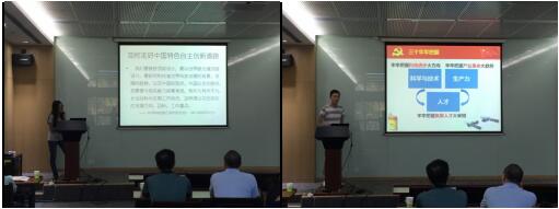 在集体学习环节,姚立研究员以“学讲话,增强四个意识”为题作了主题报告,报告首先详细解读了“政治意识,大局意识,核心意识,看齐意识”的具体定义,报告后通过问答的方式对为什么要学和怎么学等关键问题进行了详细阐述,这种在报告过程中穿插若干问题的提问,引导了党员们进行深入思考和积极回答,活跃了学习的气氛。随后,党支部委员彭超、郭郁葱、陈静、姜利学同志分别和大家一起就“学习习近平总书记系列重要讲话”及“习近平关于科技创新论述摘编”等方面的内容,联系自己的学习和工作实际进行了会议发言,号召大家联系自身实际,加强学习,认真领会习近平总书记系列重要讲话的精神,以学习的成效指导今后的工作。