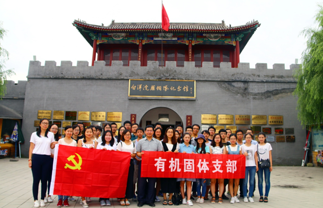 今年是中国共产党建党96周年,也是“九一八事变”爆发86周年暨抗日战争胜利72周年,为了进一步学习先辈们为争取民族解放而浴血奋战的历史,教育和引导大家坚定理想信念、牢记使命宗旨,激发奋发向上的工作热情,同时也为进一步增强支部的凝聚力,有机固体党支部于2017年8月26日组织全体党员参观了河北白洋淀抗战纪念馆,开展了以“重温历史、缅怀先烈”为主题的教育实践活动。