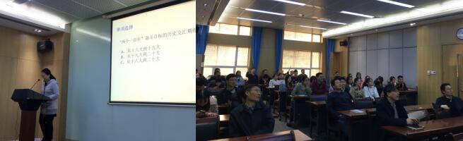首先,党支部书记姚立同志带领全体党员学习了党的十九大报告及其相关精神,强调党的十九大是在全面建成小康社会决胜阶段、中国特色社会主义进入新时代的关键时期召开的一次意义非凡的大会。全体党员应该充分认识习近平新时代中国特色社会主义思想是全党全国人民为实现中华民族伟大复兴而奋斗的行动指南,必须长期坚持并不断发展,不忘共产党人的初心和使命,为中国人民谋幸福,为中华民族谋复兴。随后,何圣贵同志讲述了对党的十九大报告中新时代这一提法的认识和感想:虽然我国还处在社会主义的初级阶段,但我们能认清目标、布局发展,坚持不断地持续发展,我们有信心说我们到了一个新时代!党的十九大精神的精髓是全面发展,新时代的发展是一个加速式的发展。接下来,党支部组织了党的十九大精神学习知识竞答,全体党员纷纷踊跃举手竞答,显示了党员们对报告的高度关注及对党的十九大精神的深刻领悟,这些也得益于支部微信群经常及时地学习和分享。