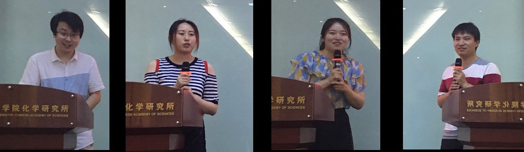 随后,毕业生们回顾总结了在化学所的学习生涯,分享了对科研和学习的心得体会,表达了感恩之心以及对未来的期许。毕业生刘正辉从阅读文献、学习实验技能、增加相互交流、提升实力与眼光等方面分享了自己的科研经验,并鼓励在读的研究生们,要保持一颗平常心,坚韧的向着目标前进;杨悠笛分享了自己攻读博士期间的收获,表达了用真心对待生活、用坚忍不拔的恒心对待课题、用信心面对未知和挑战、用耐心对待困难、用爱心对待他人的感受;杨得鑫博士用自身经历强调了“细节决定成败”,提醒师弟师妹们在科研中一定要细致、认真。