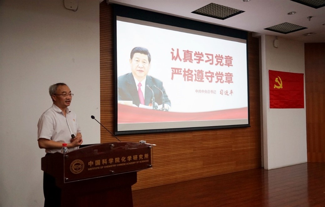 会议开始前,全体离退休党员佩戴党徽,面对党旗,在王笃金的带领下重温入党誓词,迎七一党员大会在庄严的宣誓中拉开了序幕。王笃金首先传达了中央关于开展“不忘初心、牢记使命”主题教育相关会议精神,明确了开展此次主题教育的重要意义、总体要求、目标任务、重要措施、组织领导等内容。随后回顾了化学所“不忘初心、牢记使命”主题教育工作进展,并对下一步主题教育工作进行了具体部署。