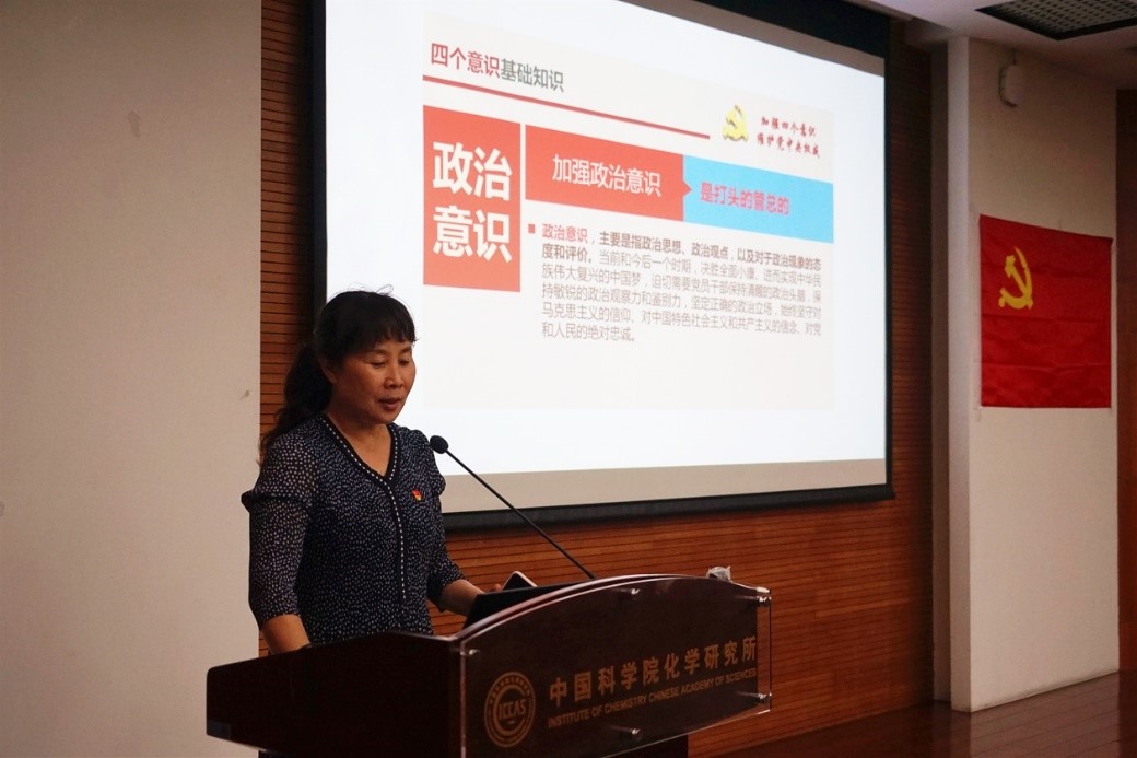 随后,许红梅以《加强“四个意识”维护党中央权威》为题,梳理了牢固树立“四个意识”的相关内容。她从“四个意识”的科学内涵和重大意义,以及如何加强三个方面进行了详细解读。她指出,作为新时代党员,要不断加强政治理论学习,强化责任担当,以党的纪律和规矩严格要求自己,牢固树立政治意识、大局意识、核心意识、看齐意识,积极发挥党员的模范带头作用。