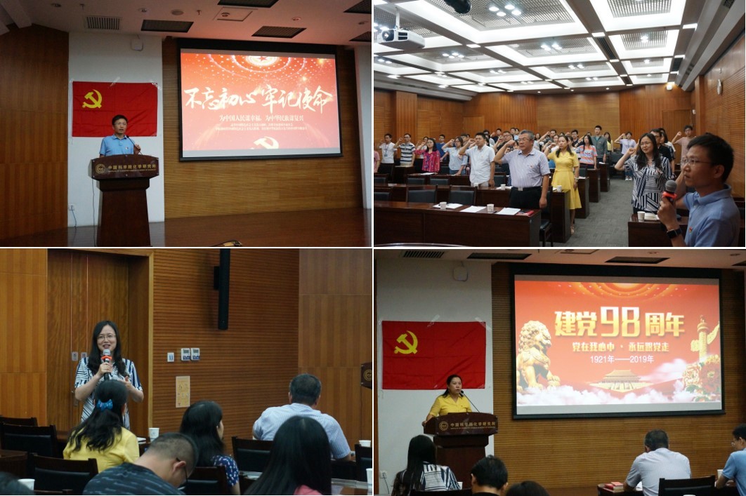 会议开始,党支部书记郭玉国研究员带领与会党员在鲜红的党旗下重温了入党誓词,以此提醒全体党员“不忘入党初心,牢记伟大使命”,并要求大家坚定信念、端正入党动机、用自己的实际行动践行党员先进性。蒋礼传达了所党委 “不忘初心、牢记使命”主题教育工作部署。党委委员方晓红研究员发言,指出深入开展“不忘初心,牢记使命”主题教育是新时代加强党的思想建设和政治建设、保证党不忘初心和使命的重要举措,是当前和今后一个时期的重要政治任务。支部每位党员都要严肃对待、认真学习,确保每个人的主题教育学习都要落到实处、有所收获。