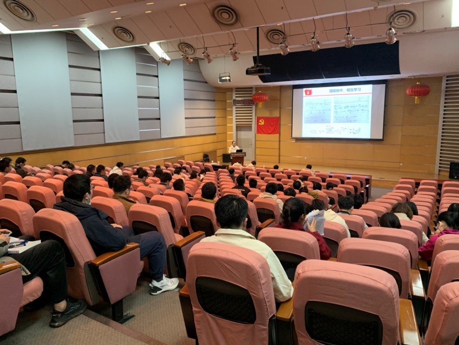 2021年10月24日,分子识别与功能党总支在所礼堂召开党总支党员大会,开展“弘扬科学家精神”主题党日活动暨研究生思政教育第一课。党总支副书记程靓主持活动,全体党员、研究生和新进实验室的博士后参加活动。