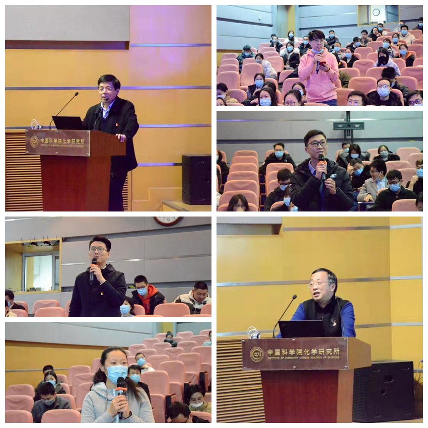 科技创新离不开科学精神的支撑,一代代科技工作者用实际行动塑造并形成了以“爱国、创新、求实、奉献、协同、育人”为内涵的新时代科学家精神。作为我所在前沿科学技术研究和国家重大应用需求研究领域的杰出代表,宋延林研究员和赵彤研究员自上世纪九十年代到所工作以来,带领团队勇攀高峰、敢为人先,在各自领域做出了一系列重要成果,他们严谨治学、潜心研究,充分诠释了新时代的科学家精神。宋延林研究员以“科研与人生”为主题,向在座的青年人员分享了科研目标确定与途径选择、化学工作者的基本素质与能力、做学问的三个境界及知识分子的胸怀、修养与责任等内容,他将科学研究与日常生活、传统文化、人生哲理融会贯通,用浅显易懂的语言将做人、做事、做学问有机融合到一起,形象且深刻地回答了一名科研人员应该如何做“绿色科研”,如何看待名利、梦想与成功等问题。赵彤研究员结合自身面向国家重大需求所开展的高分子树脂研究经历,向大家分享了如何将一个实验室技术或产品逐步实现工程化应用并产生真正价值的实践与心得,他从基础科学问题的解决、应用需求牵引技术发展、产品制备的工程应用挑战、新材料的创新研发等方面进行了深入浅出的介绍,并鼓励大家从经济社会发展和国家安全面临的实际问题中凝练科学问题,携手攻克“卡脖子”问题。