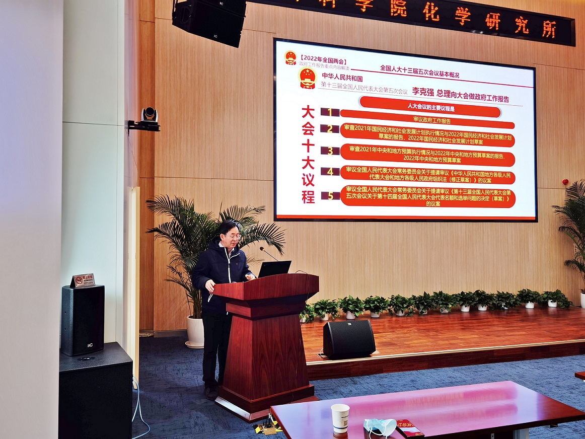 按照化学所党委相关部署要求,2022年3月24日上午,有机固体第一党支部召开党员大会,专题学习十三届全国人大五次会议、全国政协十三届五次会议精神。