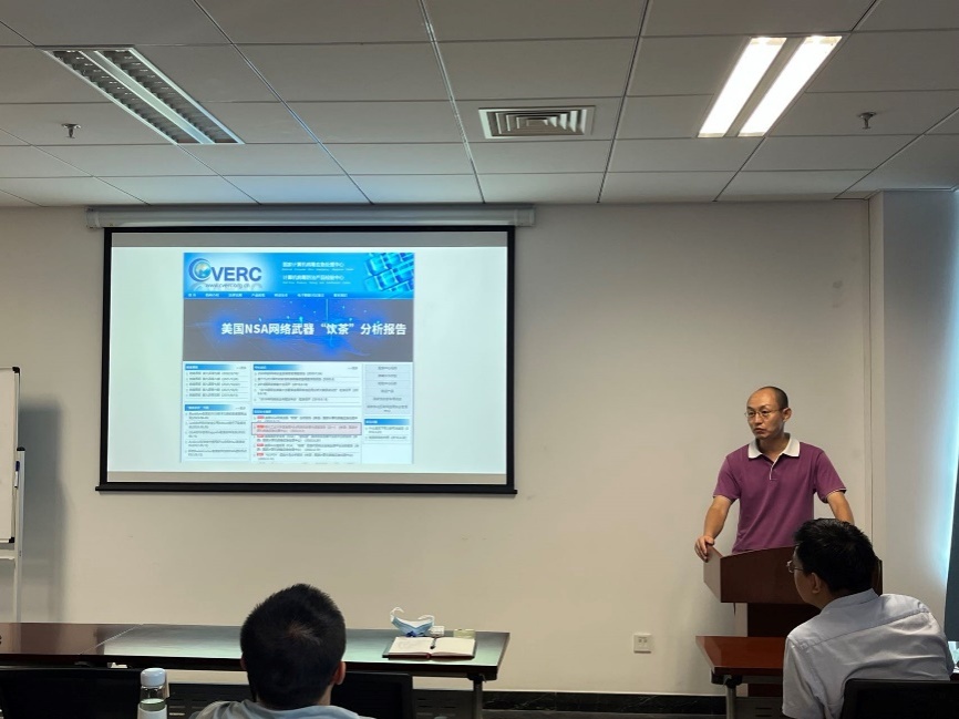首先,党支部副书记鲁闻生同志作“夯实网络安全责任,共筑网络安全防线”报告。他从信息安全的基本常识切入,以国家计算机病毒应急处理中心网站9月5日发布的一份网络攻击事件调查报告为例,强调了举办网络安全宣传、提升全民网络安全意识和技能,是国家网络安全工作的重要内容。他告诫全体党员网络安全和信息化事关国家安全和国家发展,在日常生活中切勿随意点击不明链接或泄露个人隐私信息,要从思想和行动上引起高度重视,不断增强网络安全意识。他号召广大党员要主动知法、学法、懂法,从自身做起,做网络安全维护者和践行者,积极宣传网络安全知识,齐心协力,筑牢网络安全的“钢铁长城”,守护网络安全“生命线”。