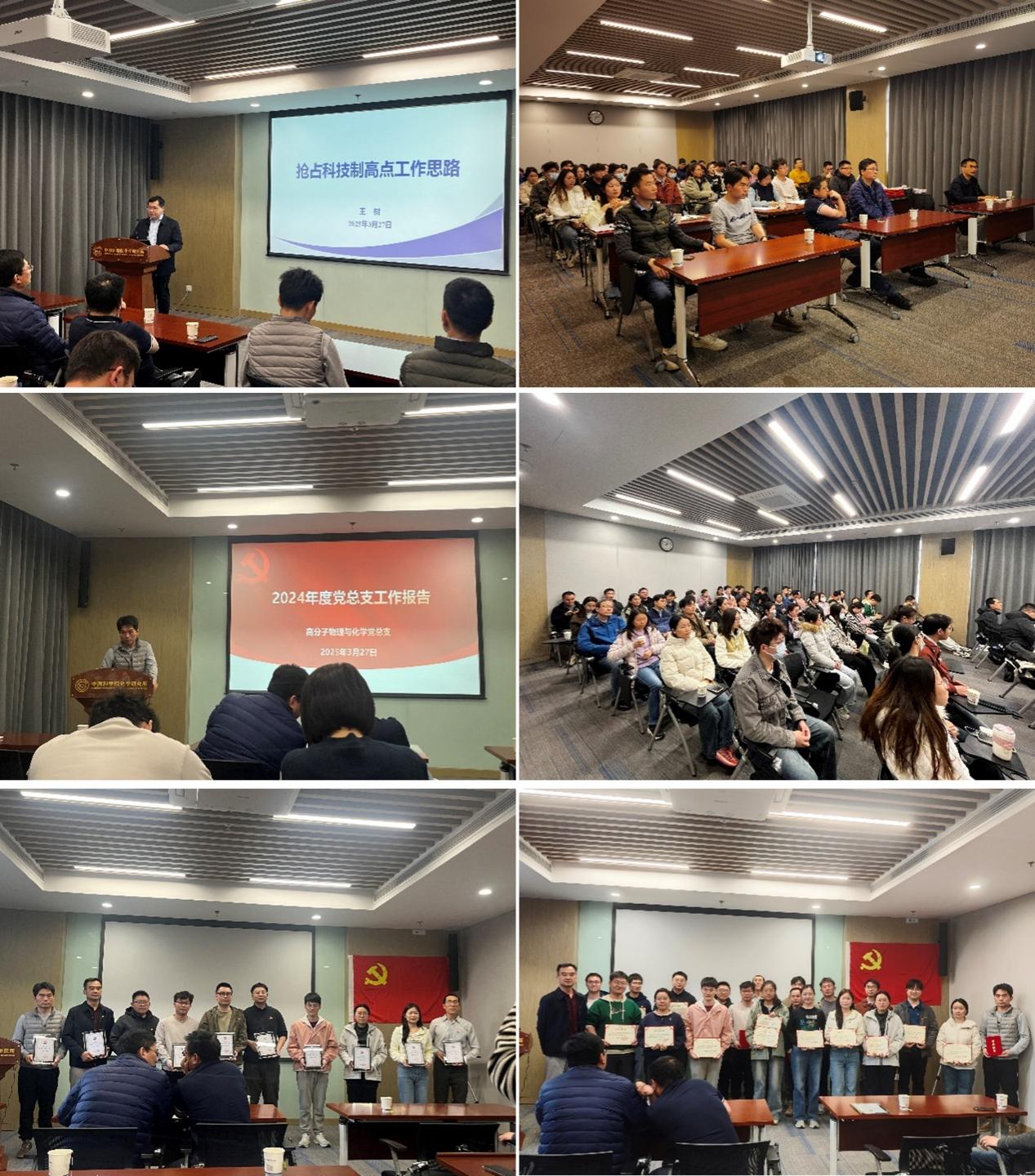 党总支副书记江剑在会上作2024年度高分子物理与化学党总支工作报告,介绍了党总支2024年全年工作情况,特别通报了政治学习工作。2024年,党总支为进一步完善基层党支部建设,激发党员学习的积极性与主动性,通过创新学习方式方法,运用线上线下相结合的模式,搭建学习交流平台,分享学习心得,营造学习氛围,让学习成为党员的自觉行动。