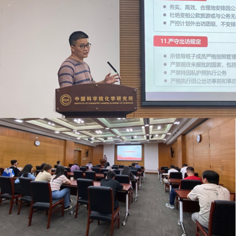 高蕻围绕中央八项规定精神讲专题党课,带领学习了中央八项规定的出台背景、精神实质及价值意义,中央八项规定及其精神和实施细则,化学所党委贯彻落实中央八项规定精神的具体举措和违反中央八项规定精神的典型案例等内容。他指出,中央八项规定精神的实质是厉行勤俭节约、反对奢侈浪费和奢靡之风、廉洁从政、工作作风务实。大家要严守纪律红线,遵守各项规定,坚决贯彻落实中央八项规定精神,把党规党纪内化于心、外化于行,做忠诚、干净、有担当的优秀党员,营造风清气正的科研环境。