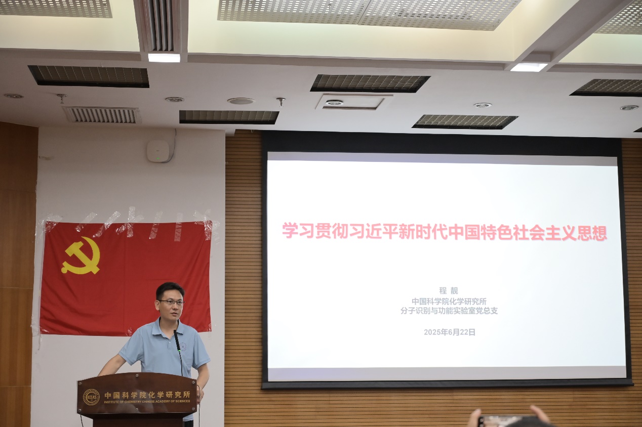 6月22日,分子识别与功能党总支召开党员大会,党总支书记程靓以“以学铸魂、以学增智、以学正风、以学促干”为主题讲授专题党课,系统阐释习近平新时代中国特色社会主义思想对科研工作的指导意义,通过"理论溯源-方法指引-历史启示-实践要求"四个维度,结合徐光宪、高小霞院士突破稀土技术封锁的典型案例,诠释科学家精神的时代价值,激励广大党员从科学家精神中汲取奋进力量,在抢占科技制高点中勇担使命。会议还进行了党员发展工作,一致同意接收周克寒、岳铭森、郭一帆三位同志为中共预备党员。