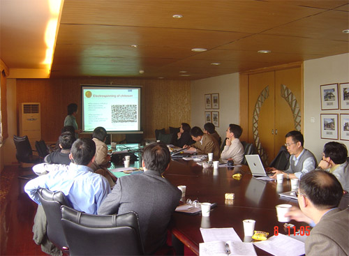 在为期一天的研讨会中,通过了京津两地高分子青年学者沙龙规则(Beijing-Tianjin Polymer Forum of Young Scholars)。与会者介绍了各自近期的研究结果、研究兴趣、正在开展的研究、研究设想和面临的挑战,并就高分子基础科学问题和应用基础问题进行了开诚布公、广泛深入的研讨。本次沙龙的研讨热点主要集中在大分子制备-构筑-功能研究,尤其是螺旋结构与手性、组装结构形态与机制、药物与医用、光子与光电性、仿生与智能研究;高分子催化与结构可控、高分子结晶等高分子基础问题也得到了高度重视。强调了高分子及其组装体系的功能研究、大分子与生物和生命科学的结合,注重与经济发展相关、重要的高分子材料制备的应用基础研究。