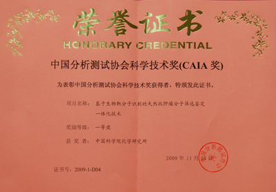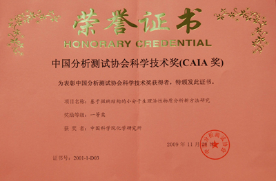 2009年中国分析测试协会科学技术奖(CAIA奖)评选已揭晓,本次评审共评出一等奖6项、二等奖9项、三等奖7项。化学所两项成果获得CAIA一等奖: