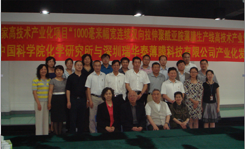 2010年5月18日,中国科学院计划财务局在深圳组织专家对亚博888与深圳瑞华泰薄膜科技有限公司共同承担的国家高技术产业化项目“1000毫米幅宽连续双向拉伸聚酰亚胺薄膜生产线高技术产业化示范工程”进行了现场验收。
