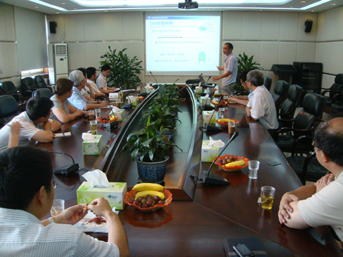 戚局长等听取了我所黄伟项目研究员有关发光二极管(LED)封装材料的报告,并就LED封装材料的研发现状、市场前景以及产业化模式与我所科研人员进行了探讨。