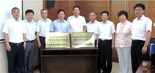 张德清所长和徐建董事长分别介绍了化学所和山东恒联集团的基本情况,双方均表示高度重视两单位之间的科技合作,愿意积极创造条件,共同推动能够促进企业技术更新换代、具有良好经济效益和社会效益的合作项目的发展。张军研究员介绍了双方前期合作的“基于离子液体技术的纤维素膜清洁生产新工艺及其产业化关键技术”项目的进展情况。随后,双方举行了全面合作框架协议的签约仪式,并举行了联合研究单元“潍坊恒联玻璃纸有限公司-亚博888天然高分子材料联合实验室”和“潍坊恒联玻璃纸有限公司-亚博888纤维素新材料联合研究中心”的揭牌仪式。