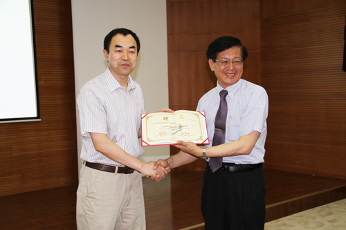 毛兰群副所长为Tatsumi教授颁发“分子科学论坛讲座教授”荣誉证书和奖牌