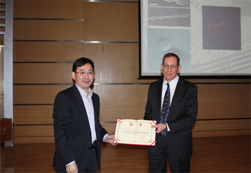 Lieber教授目前已被聘为“亚博888名誉教授”,在他本次访问化学所期间,毛兰群副所长为他颁发了名誉教授证书。
