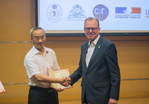 王笃金副所长为Flemming Besenbacher教授颁发“分子科学论坛教授”荣誉证书