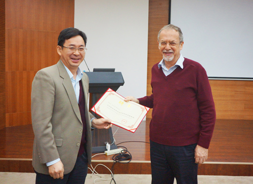 2014年10月15日,以色列威兹曼科学院(Weizmann Institute of Science)Jacob Klein教授应邀访问化学所,并作题为“Macromolecular Synergy in Joints: A New Model for Biological Lubrication”的分子科学前沿讲座报告,报告由王毅琳研究员主持,张德清所长为Klein教授颁发了“分子科学前沿讲座教授”荣誉证书。