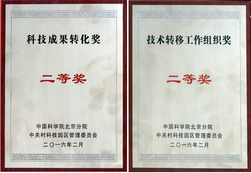 化学所科研成果转化办公室获得2015年度“中国科学院科技成果在北京转化先进团队”技术转移工作组织奖二等奖,这是化学所科研成果转化办公室连续第五年获得该奖项,此前曾获得一等奖三次,二等奖一次。