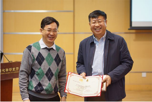 张德清所长为安立佳院士颁发“分子科学论坛”荣誉证书和奖牌
