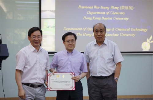 2017年5月23日,香港理工大学黄维扬(Wai-Yeung Wong)教授访问化学所并作题为Multifunctional Metallopolyynes: Synthesis, Functions and Applications 的分子科学前沿讲座,报告由化学所李玉良院士主持,张德清所长为黄维扬教授颁发了“分子科学前沿讲座”荣誉证书。