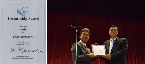 化学所李峻柏研究员获得2017年日本化学会Lectureship Award
