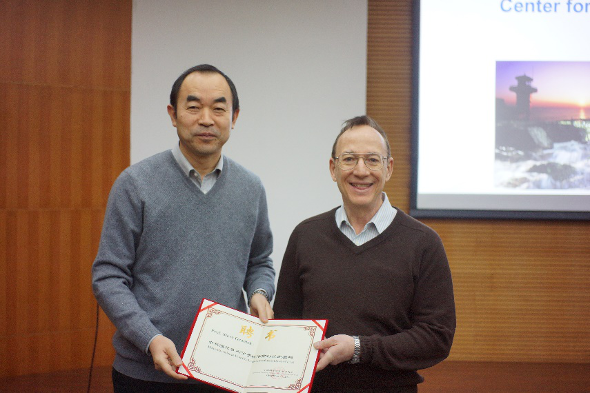 2017年12月15日,韩国软物质及生命材料基础科学研究所Steve Granick教授访问化学所,并作题为“Active Materials: Surprises and Research Opportunities”的分子科学前沿讲座。报告由化学所车延科研究员主持,毛兰群副所长为Granick教授颁发了“分子科学前沿讲座”荣誉证书。