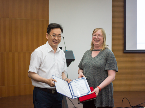 2018年5月31日,美国犹他大学(University of Utah)Shelley D. Minteer教授访问化学所,并作题为“Electrocatalysis for Energy and Electrosynthesis Applications”的分子科学论坛报告。报告由范青华副所长主持,张德清所长为Shelley D. Minteer教授颁发了“分子科学论坛”荣誉证书和奖牌,以及中国科学院国际杰出学者证书。
