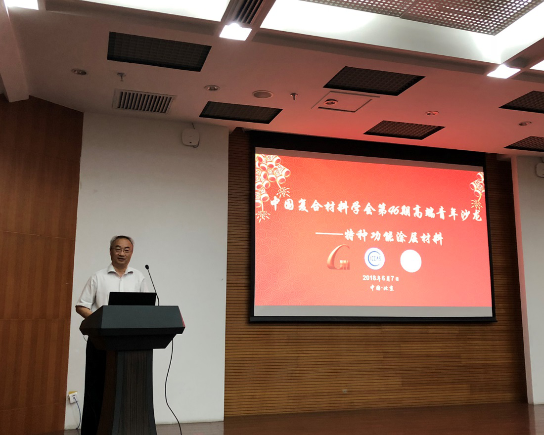 2018年6月7日,中国复合材料学会第46期高端青年沙龙-特种功能涂层材料在化学所举办,会议由中国复合材料学会主办,化学所青年创新小组承办。来自航空、航天、中核、电气、船舶等领域科研单位以及化学所的科研人员共100余人参加了沙龙活动。化学所党委书记、副所长王笃金研究员出席并致辞。