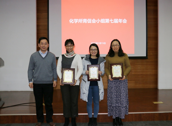 张德清首先致辞,对青促会过去一年取得的成绩给予了充分肯定,也对会员提出了更高的希望。他强调青年科技人才是化学所科技创新队伍中的重要力量,鼓励大家不忘初心,充分利用好青促会平台,积极地开展交叉合作,争取重大成果产出,实现青年人才的成长,同时带动全所青年科研人员共同进步。张所长为2018年结题的第四批会员陈婷、闫永丽和李明珠3人颁发了荣誉会员奖牌。