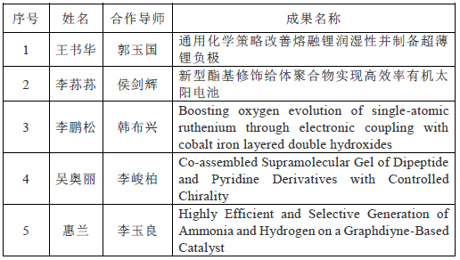 化学所5名博士后入选2020年博新计划优秀创新成果