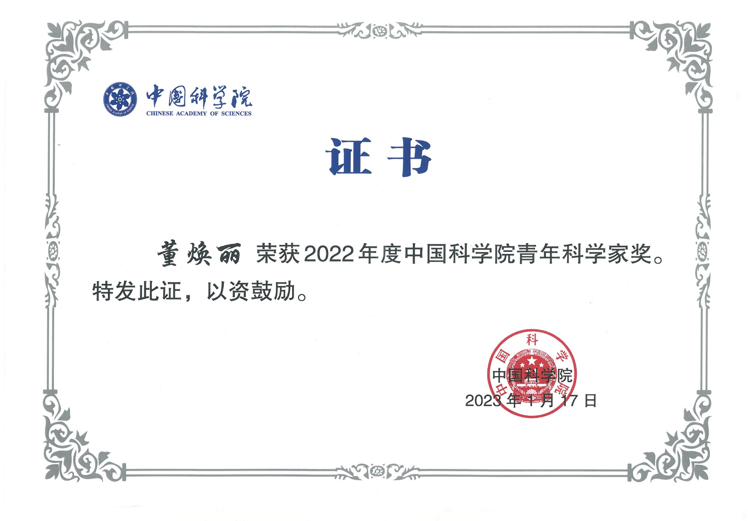 化学所董焕丽、周恒两位研究员荣获2022年度中国科学院青年科学家奖