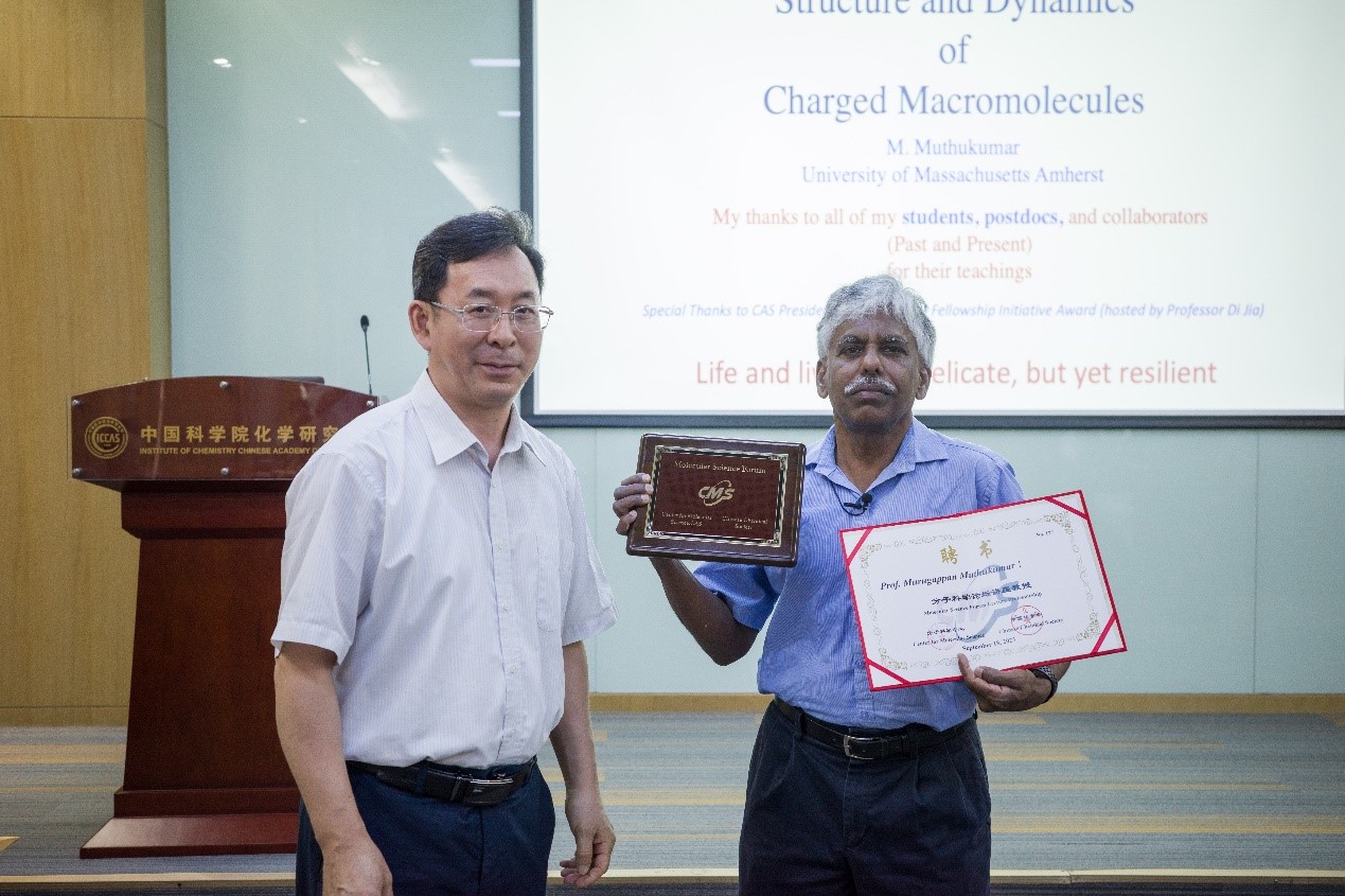 美国马萨诸塞大学Murugappan Muthukumar教授访问化学所并作分子科学论坛报告