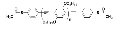 自上世纪90年代以来,共轭聚合物以其优异的光电性能在有机光电子领域受到广泛的重视。然而,共轭聚合物在纳米器件中的研究则鲜有报道,主要有两个原因:(1) 大多数共轭聚合物的分子缺乏足够的刚性,很容易团聚,导致其难以“站立”在基板上以SPM构筑 “模型器件”,或以纳米间隙电极对构筑实际的器件;(2) 大多数共轭聚合物分子缺乏特异的功能性端基,导致聚合物分子缺乏与基板或电极结合的能力,分子与电极的结合不稳。然而,对共轭聚合物纳米器件的研究,不仅可以将共轭聚合物拓展到纳米电子学领域,同时也为我们在纳米尺度/分子尺度上研究共轭聚合物,提供一个有益的手段。
