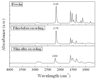 TDMEE 粉末及施加电压前后薄膜的红外谱图