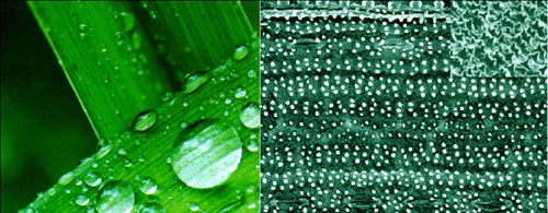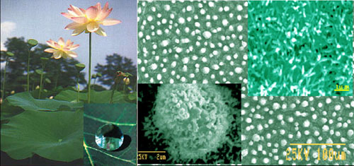 该课题组从具有特殊表面性能的生物体出发,选择几种典型的生物体表面进行重点研究,揭示了生物表面特殊浸润性的机理:
