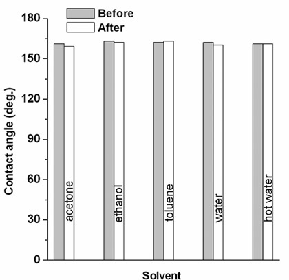 表面在有机溶剂溶剂处理前后接触角几乎没有改变