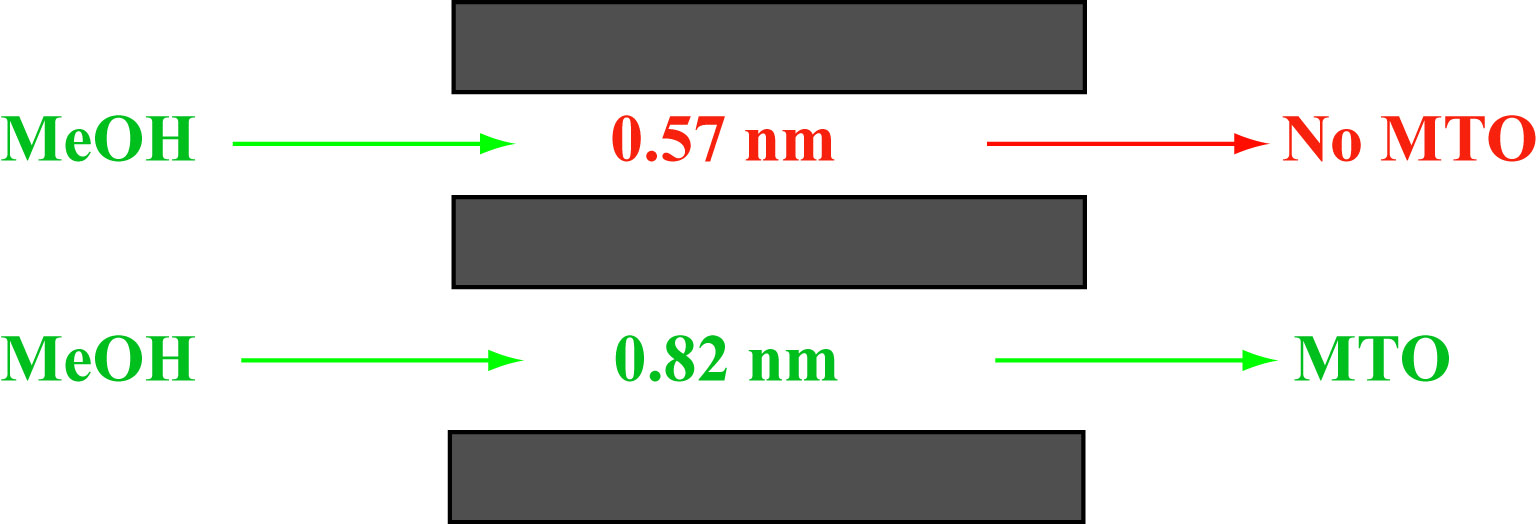 分子筛孔道所能容纳有机中间体的大小决定甲醇转化反应的进度