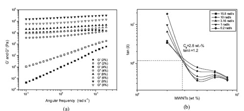 在前期研究中,该实验室研究人员发现一类新型离子液体对纤维素具有优异的溶解性能(Biomacromolecules 2004, Vol.5, No. 2, p.266-268,Macromolecules 2005, Vol.38, No. 20, p.8272-8277)。通过流变学研究,发现该类离子液体和碳纳米管之间具有较强的相互作用(图1),有利于碳纳米管在离子液体中的分散。