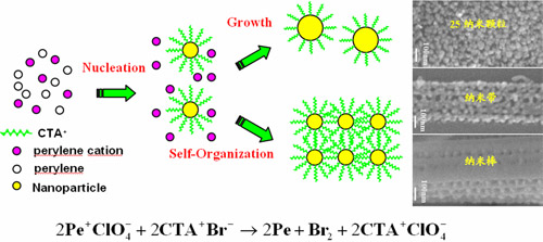 液相胶体化学反应法制备有机介观低维结构及其自组装示意图