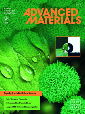 在中国科学院、国家自然科学基金委的大力支持下,化学所有机固体重点实验室的研究人员,在可控制备多功能化的导电聚苯胺空心微球方面取得了新的进展,相关研究结果发表在近期的Adv. Mater.(2007, 19, 2092-2096)上,并被选为该期杂志的封面。