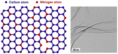 近期,研究人员实现了对石墨烯组成的控制,成功地制备出了氮掺杂石墨烯 (Nano Letters 2009, 9, 1752-1758) 。掺杂是调控石墨烯电学性能的一种有效手段,掺杂石墨烯因其巨大的应用前景已经成为研究人员关注的热点。然而,目前的研究还仅仅停留在理论上,实验上还很少有掺杂石墨烯的报道。有机固体院重点实验室研究人员在化学气相沉积法制备石墨烯的过程中通入氨气作为氮源,得到了氮掺杂石墨烯样品(图1),并对其电学性质进行了研究,发现氮掺杂石墨烯显示出 n 型导电特征,和理论研究的结果相吻合。论文发表后被自然出版集团的网络周刊(NPG, Asia Materials, http://www.natureasia.com/ asia-materials/highlight.php?id=467) 以Featured highlight的形式进行了报道。