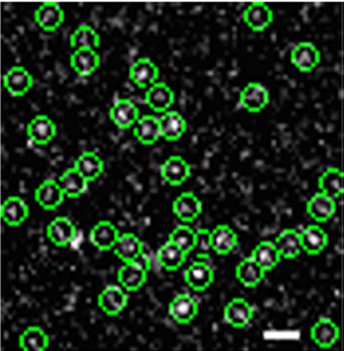 图1 细胞膜上绿色荧光蛋白标记TGF-βII型受体的单分子图像